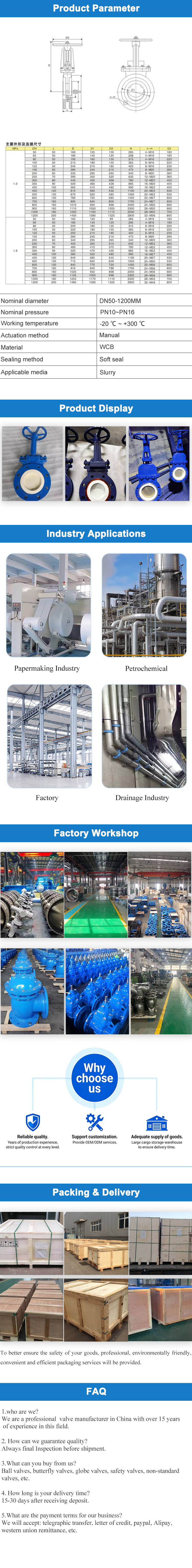 Manual ceramic knife gate valve is an industrial valve that controls fluid flow through manual operation. It uses ceramic materials to enhance wear resistance and corrosion resistance, and is mainly used to handle pipeline systems containing solid particles or corrosive media.