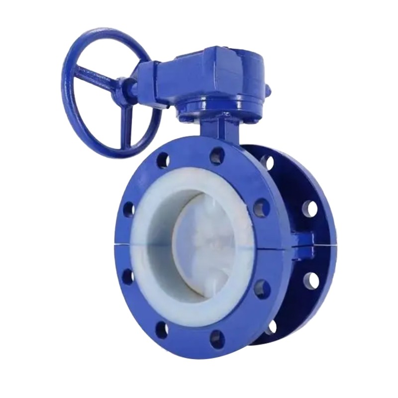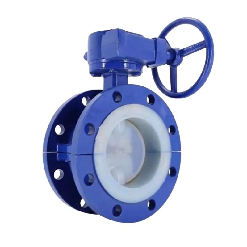 Manually operated PTFE-lined butterfly valves are corrosion-resistant valves that use a handle or worm gear drive mechanism to rotate the valve stem, thereby opening and closing the valve. Their core structure includes the valve body, butterfly disc, valve stem, and PTFE lining, with the butterfly disc acting as the opening and closing element, rotating within the valve body to control fluid flow.