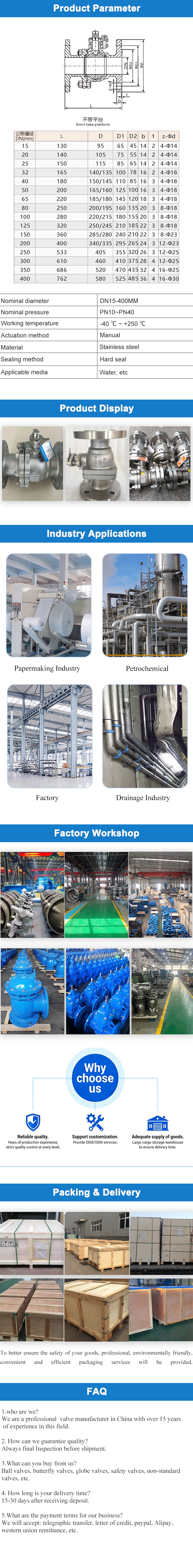 The manual stainless steel flange ball valve is an industrial control valve that integrates stainless steel corrosion-resistant material, stable flange connection, ball valve direct flow channel, and manual precision drive. By rotating the handwheel to drive the valve stem to rotate the ball 90 °, it can quickly cut off and adjust the pipeline fluid. It has the characteristics of reliable sealing,