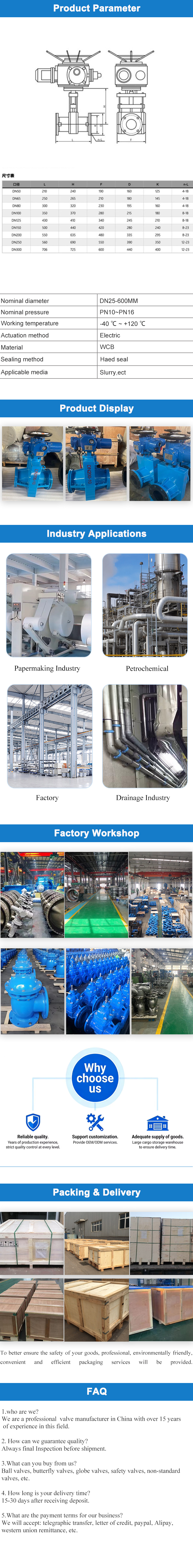 Electric pipe clamp valve is an industrial valve driven by an electric actuator to compress the inner rubber sleeve of the pressure plate, realizing the cutting and adjustment of the pipeline medium. Its core advantage is that the medium only contacts the rubber pipe, without the vulnerable parts such as valve core and packing of traditional valves.