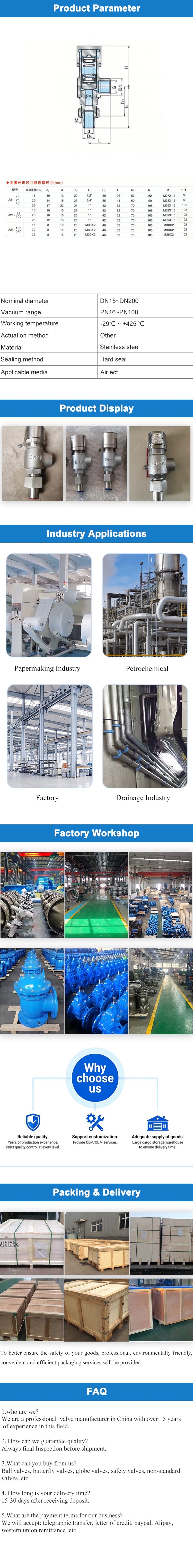 The stainless steel spring micro opening safety valve is made of 304/316/316L austenitic stainless steel as the core valve body material, and adopts a design of spring load direct action+micro opening valve disc+threaded/flange connection. It is a key protective component for the safe operation of industrial equipment and pipelines.