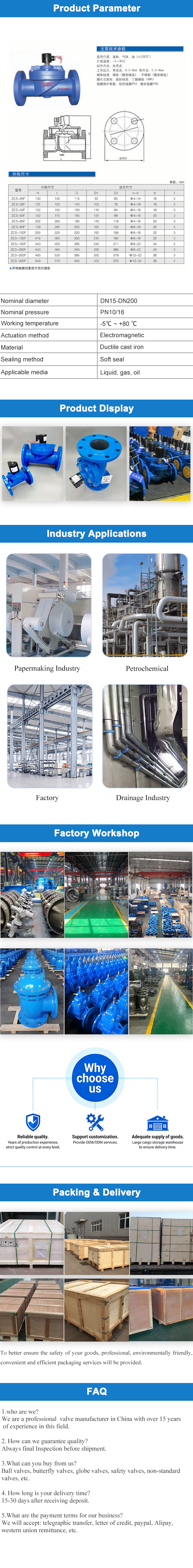 The water solenoid valve is made of ductile iron as the core valve body material, and adopts an electromagnetic coil drive+piston/diaphragm valve core opening and closing+threaded/flange connection design. Main focus is on automatic on/off control of water supply and drainage, HVAC, water purification, bathroom and other systems.