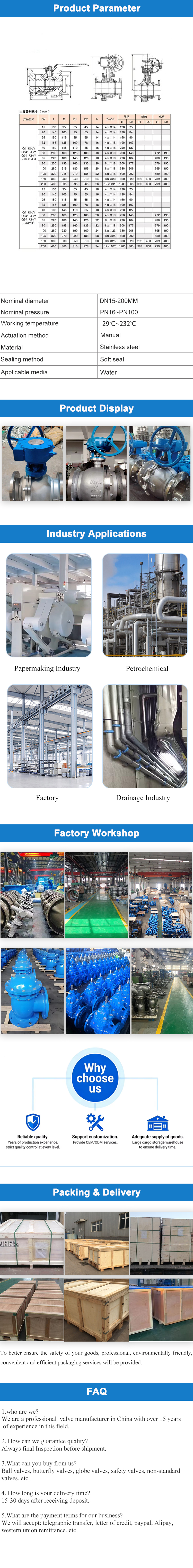 The turbine flange ball valve is designed with the core of worm gear reduction drive and ball rotation opening and closing, and is matched with valve body materials such as cast steel, stainless steel, and alloy. Balancing sealing reliability and operational convenience.