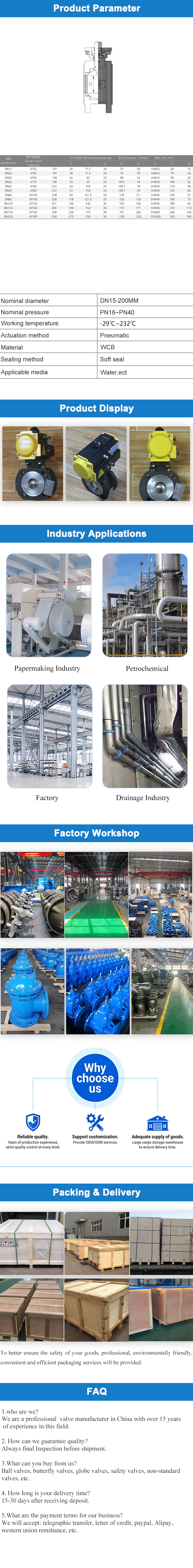 The pneumatic clamp thin ball valve is designed with cast steel/stainless steel as the valve body, ultra-thin valve body structure, pneumatic actuator drive, and clamp connection as the core. It is the preferred control component for compact pipeline systems in fields such as chemical engineering, water treatment, metallurgy, and building automation.