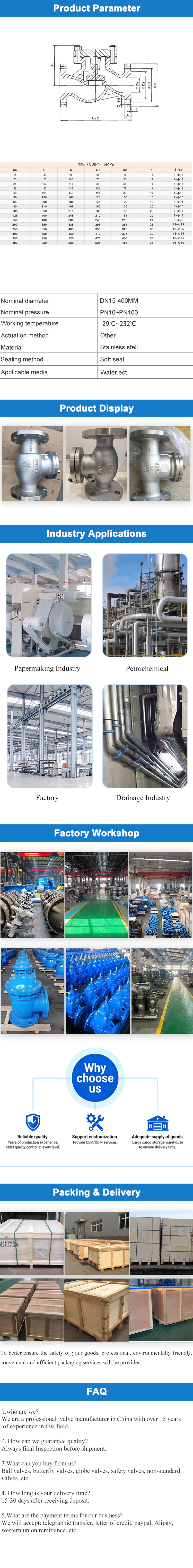 The stainless steel swing check valve is made of 304/316/austenitic stainless steel as the core valve body material, and adopts a single swing valve disc+hinge pin connection+flange connection design. It is the preferred check component for high flow pipeline systems, with features such as smooth flow channels and stable opening and closing.