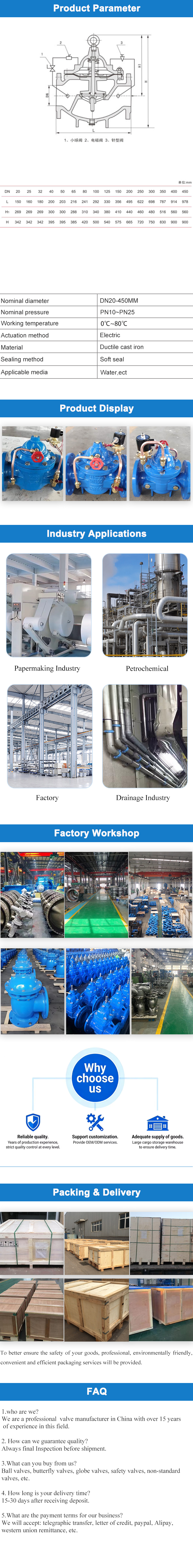 The 600X electric control valve is made of ductile iron as the core material of the valve body, and adopts a diaphragm/piston main valve+electromagnetic pilot valve control+hydraulic drive+flange connection design. Main focus is on remote automatic opening and closing of clean water pipelines for water supply and drainage, fire protection, HVAC, etc.